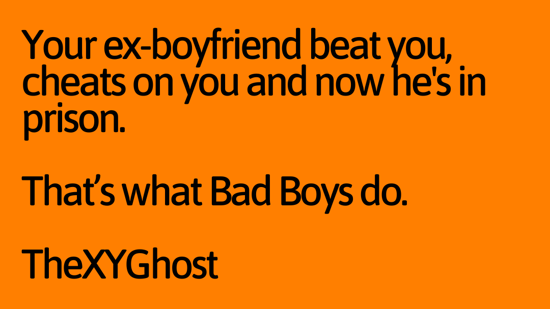 Your ex-boyfriend beat you, cheats on you and now he's in prison.