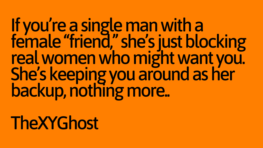 If you're a single man with a female "friend," she's just blocking real women who might want you. She's keeping you around as her backup, nothing more..