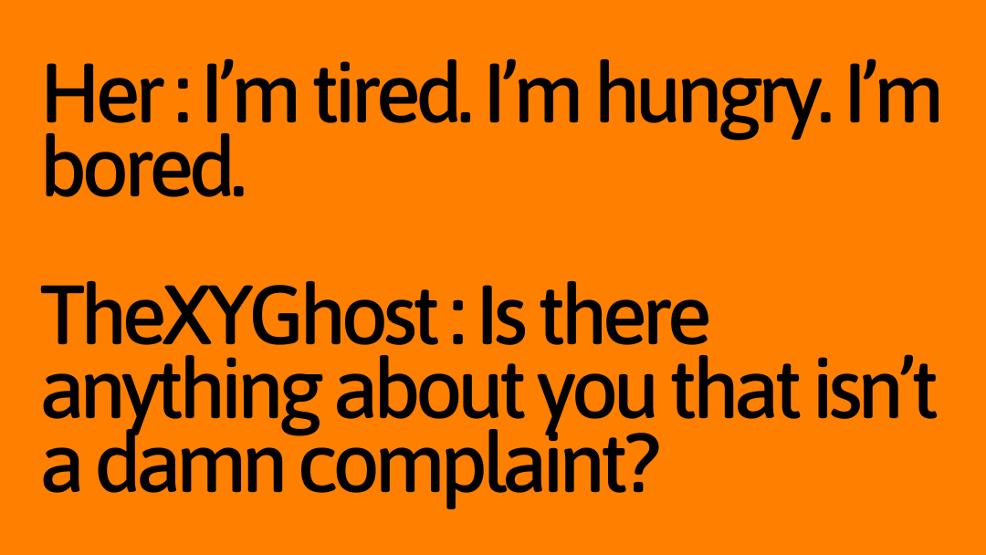 TheXYGhost : Is there anything about you that isn't a damn complaint?