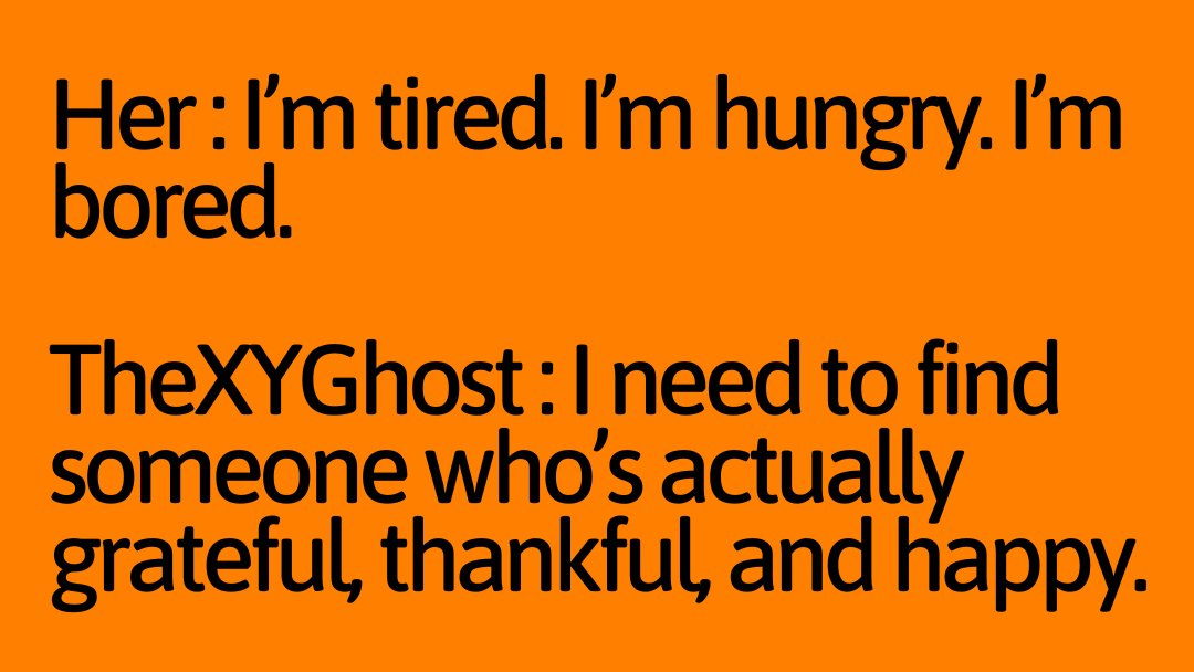 TheXYGhost : I need to find someone who's actually grateful, thankful, and happy.