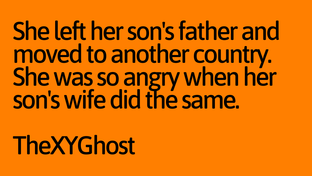 She left her son's father and moved to another country. She was so angry when her son's wife did the same.