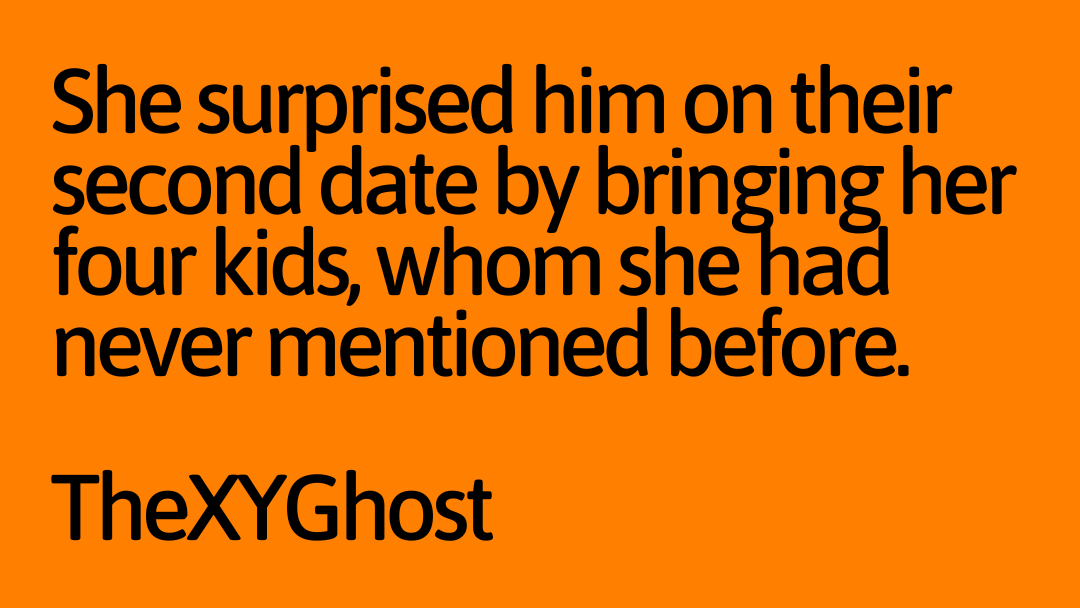 She surprised him on their second date by bringing her four kids, whom she had never mentioned before.