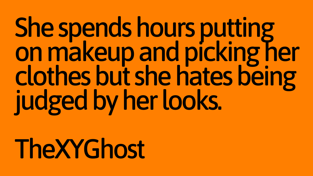 She spends hours putting on makeup and picking her clothes but she hates being judged by her looks.