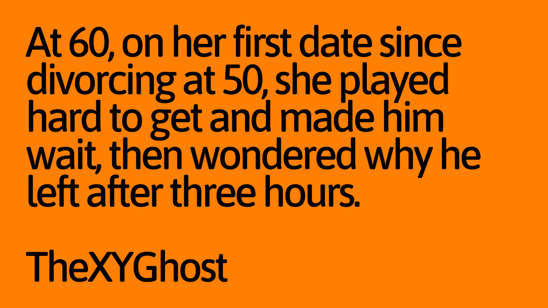 At 60, on her first date since divorcing at 50, she played hard to get and made him wait, then wondered why he left after three hours.